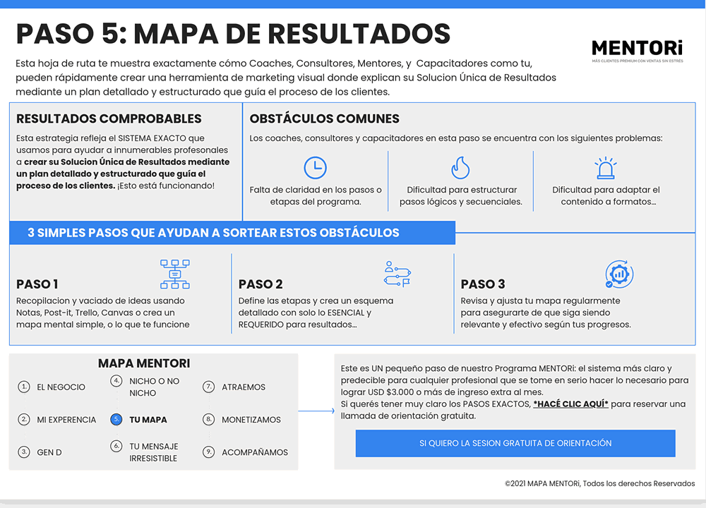 Si deseas tener muy claro los PASOS EXACTOS que debes seguir ahora mismo para crear un Modelo de Mentoria que garantice Resultados, y lograr que tus clientes paguen tarivas elevadas con gusto.